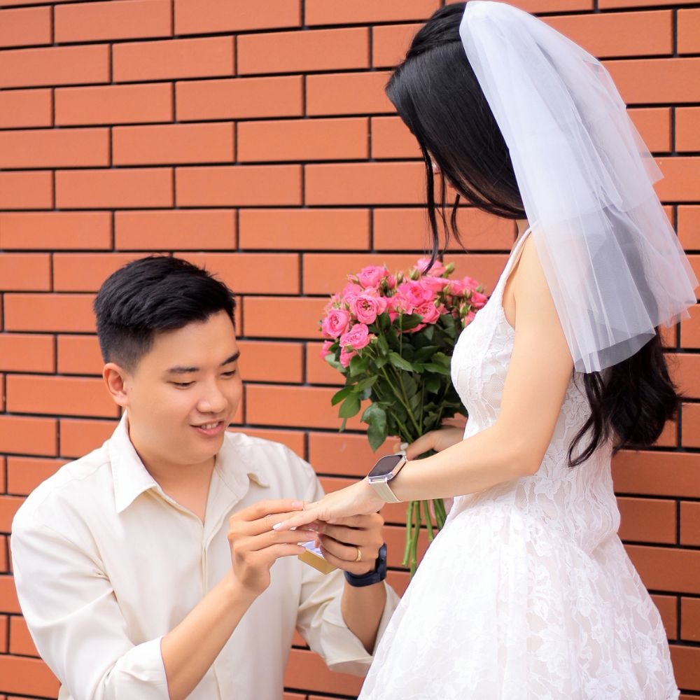 Hôm ấy, anh và em cùng nhau đi chụp ảnh kỷ niệm, mải mê lưu giữ những khoảnh khắc tưởng chừng rất bình thường nhưng lại đầy ý nghĩa. Có một chiếc hộp quen thuộc đựng dây buộc tóc, em vẫn nghĩ đó chỉ là một trò đùa nhỏ như mọi khi, mà không hề hay biết rằng anh còn giấu đi một chiếc hộp khác cùng tất cả sự hồi hộp và yêu thương. Giữa lúc chụp ảnh, khi em vừa quay lưng bước đi, anh đã lặng lẽ quỳ xuống bằng một gối, ban đầu chỉ là những câu đùa vui cho đến khi chiếc hộp nhẫn được mở ra, ánh mắt trở nên nghiêm túc và lời cầu hôn được nói thành lời. Trong khoảnh khắc ấy, mọi cảm xúc như vỡ òa, em bật khóc vì hạnh phúc — không phải vì bất ngờ, mà vì cuối cùng giây phút đã được em chờ đợi rất lâu cũng đã đến, để từ đó về sau, tình yêu của anh và em không chỉ là yêu, mà là một lời hứa sẽ cùng nhau đi hết chặng đường phía trước, bởi vì giữa vô vàn khoảnh khắc trong đời, anh và em đã chọn nhau làm tương lai.